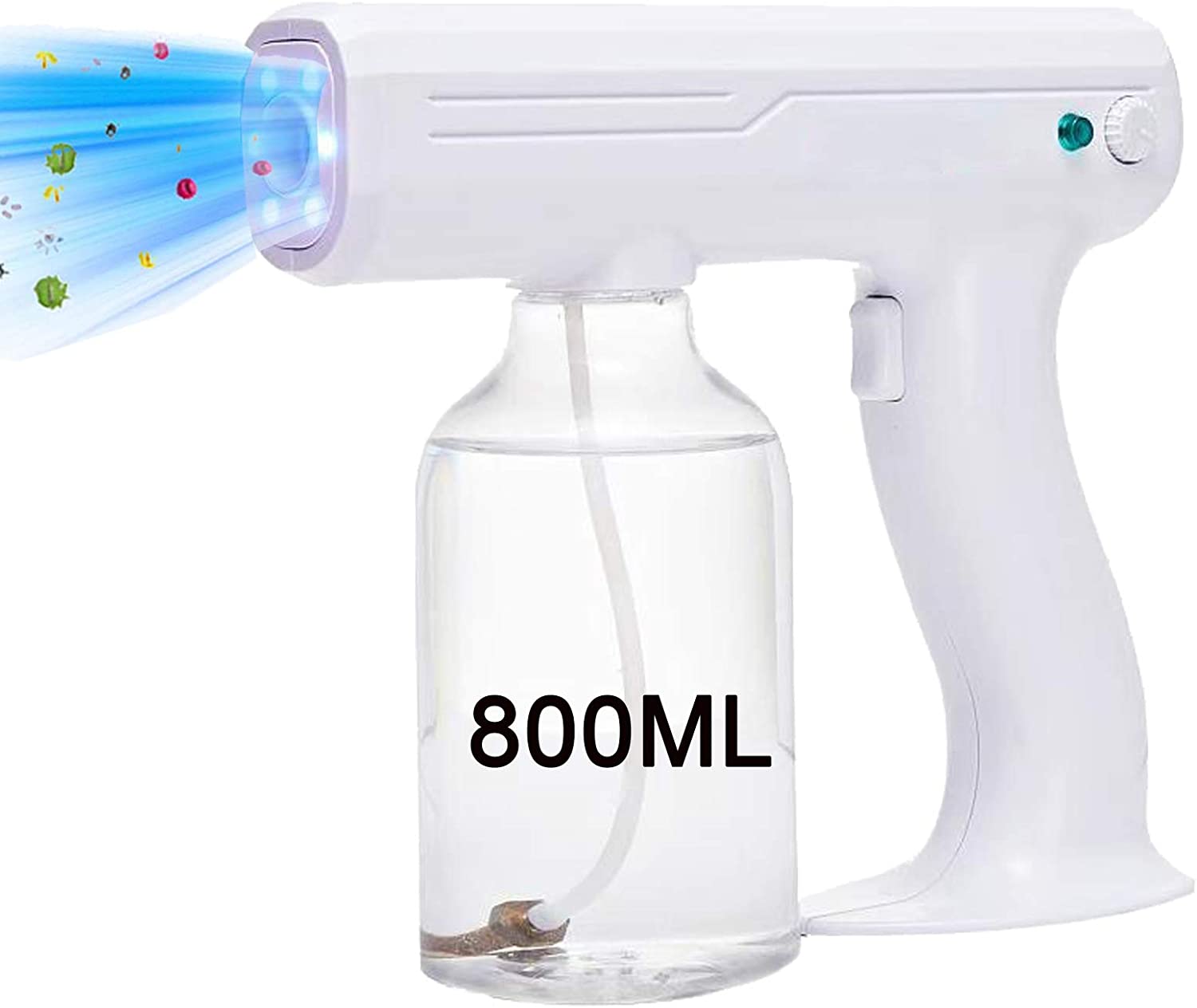 SDLOOL Disinfectant Nano Steam Gun, Adjustable ULV Fogger, 350ML 1300W Handheld Rechargeable Nano Steam AtomizerSprayer with Blue Light for Home, Garden, Indoor, Outdoor, Office or Barber Shop