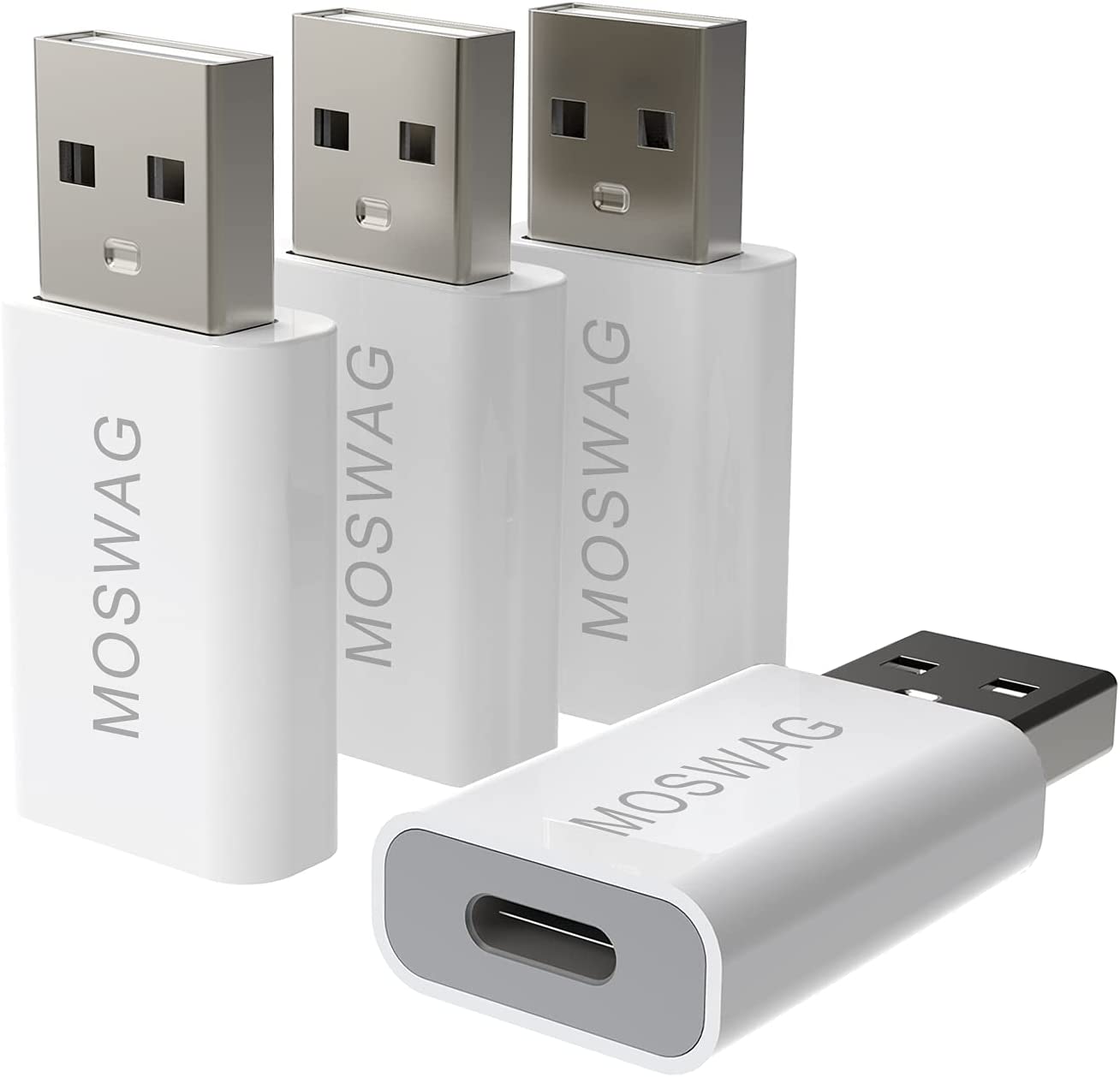 MOSWAG 4 Pack USB Type C to USB Adapter Type-A to Type-C Adapter Converter USB C Female to USB Male Adapter Compatible with Apple MagSafe Charger,iMac,MacBook Pro,MacBook,Laptops,PC,Computers and More