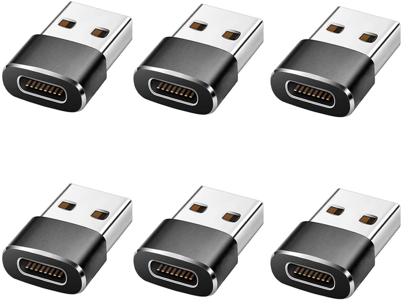 6 Pack-USB C Female to USB Male Adapter ,Type C to USB A Charger Cable Adapter,Compatible with iPhone 11 12 Pro Max, 2020,Samsung Galaxy Note 10 S20 Plus S20+ Ultra,Google Pixel 4 3 2 XL(Black)