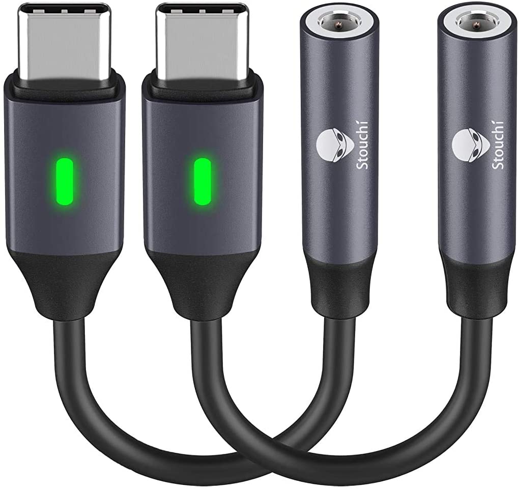 USB C to 3.5mm Dongle Adapter (2 Packs), Stouchi Type C Headphone Audio Jack Cable Cord Hi-Fi DAC Chip for Samsung Galaxy S21 S20 Ultra Z Flip Note 20,Pixel 5/4/ 3, iPad Pro -Gray