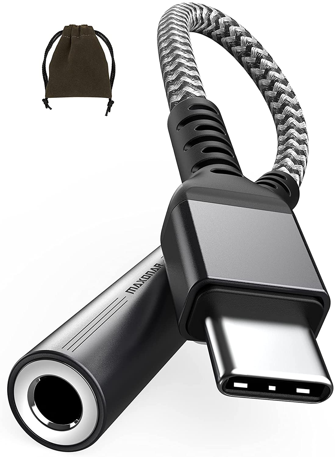 USB Type C Headphone Adapter, Maxonar Upgraded USB-C to 3.5mm Jack Dongle Digital to Analog Aux Audio Converter for Galaxy S21 S20 Note 20 10 S10 S9 iPad Pro Pixel 5 4 3 XL-Grey