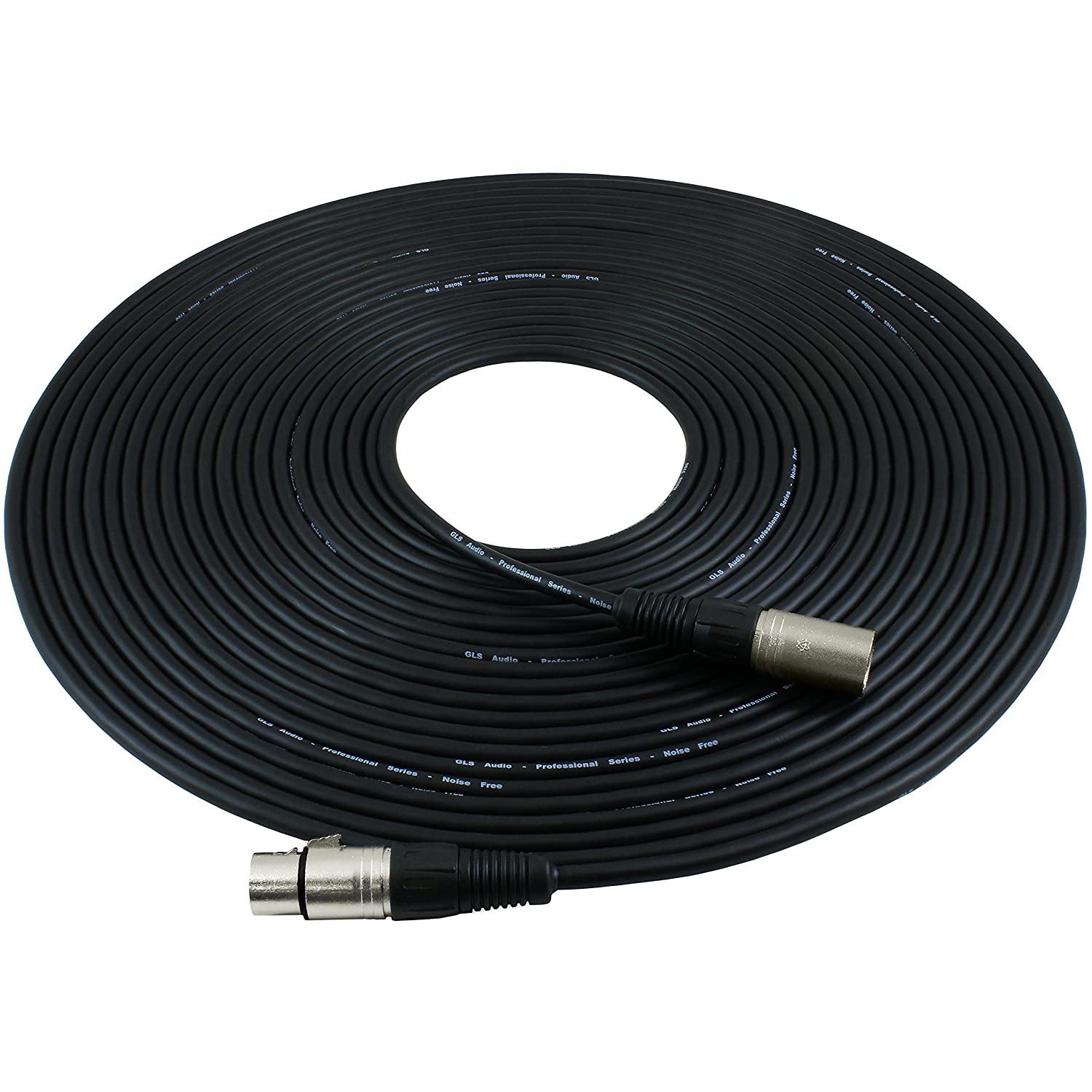GLS Audio 50ft Mic Cable Patch Cords - XLR Male to XLR Female Black Microphone Cables - 50' Balanced Mike Snake Cord - Single