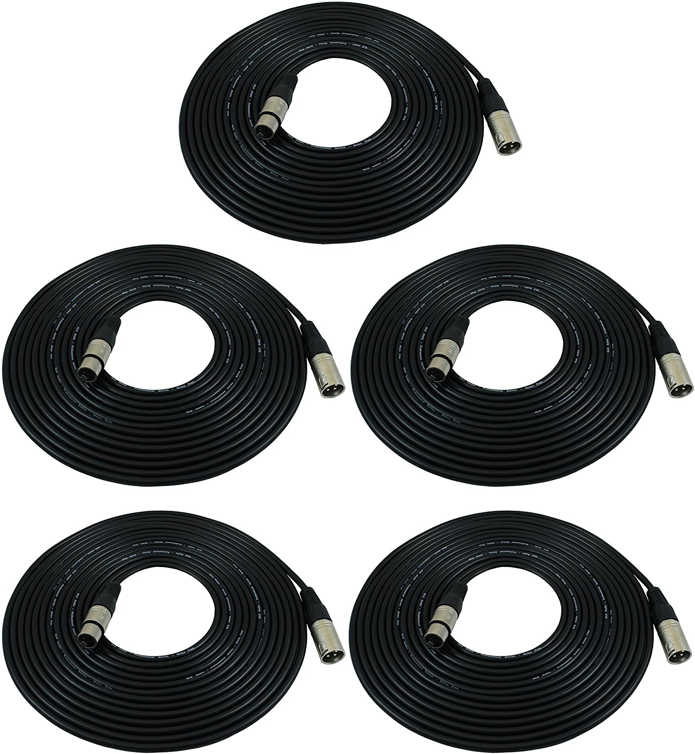 GLS Audio 25ft Mic Cable Patch Cords - XLR Male to XLR Female Black Microphone Cables - 25' Balanced Mike Snake Cord - 5 Pack