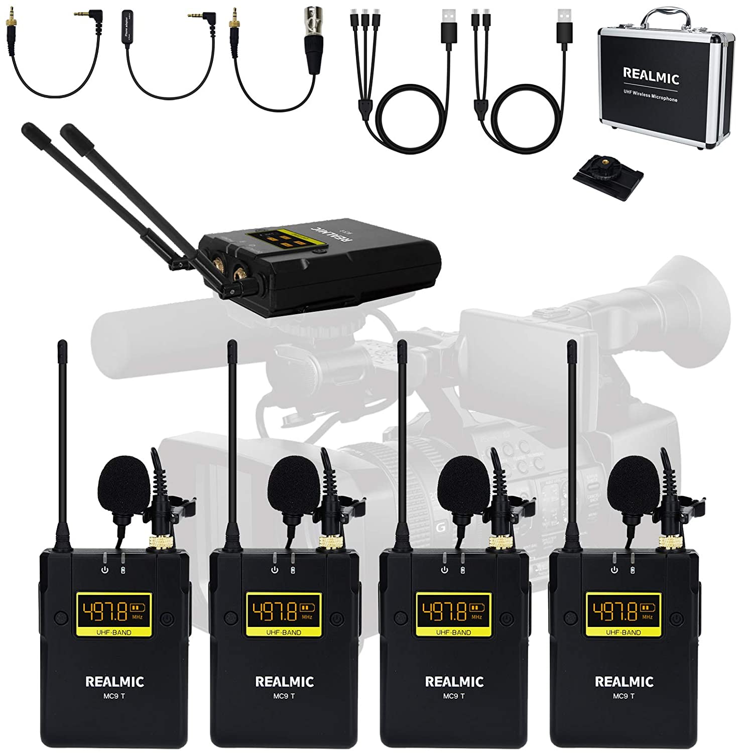 MC9F Wireless Lavalier Microphone System with Transmitter X 4,Receiver X 1,Adapter Cable X 1,Lavalier Microphone 4,Charging Cable X 5, Suitable for Live Broadcast,Interview,Teaching,Vlog,YouTube,etc