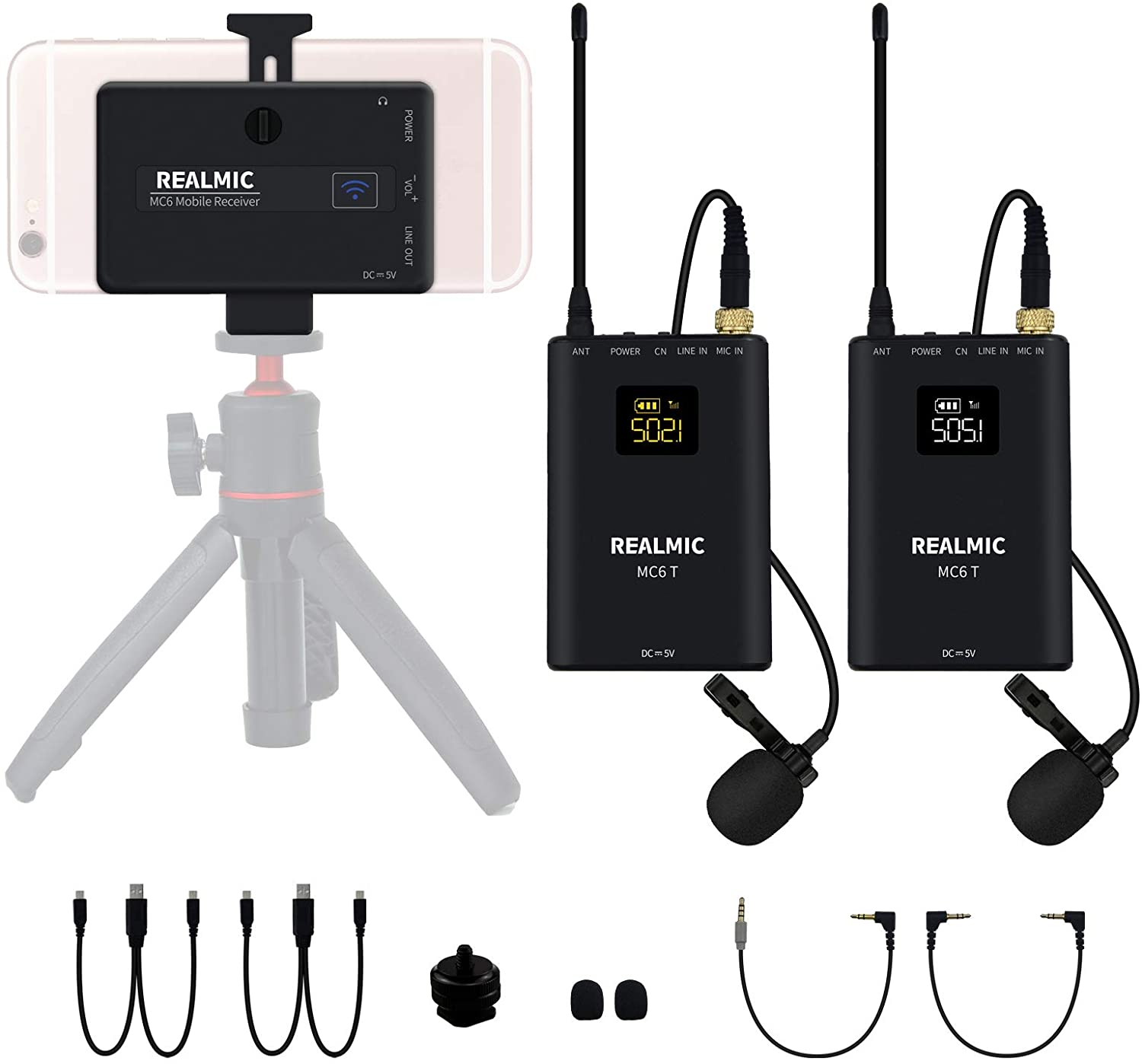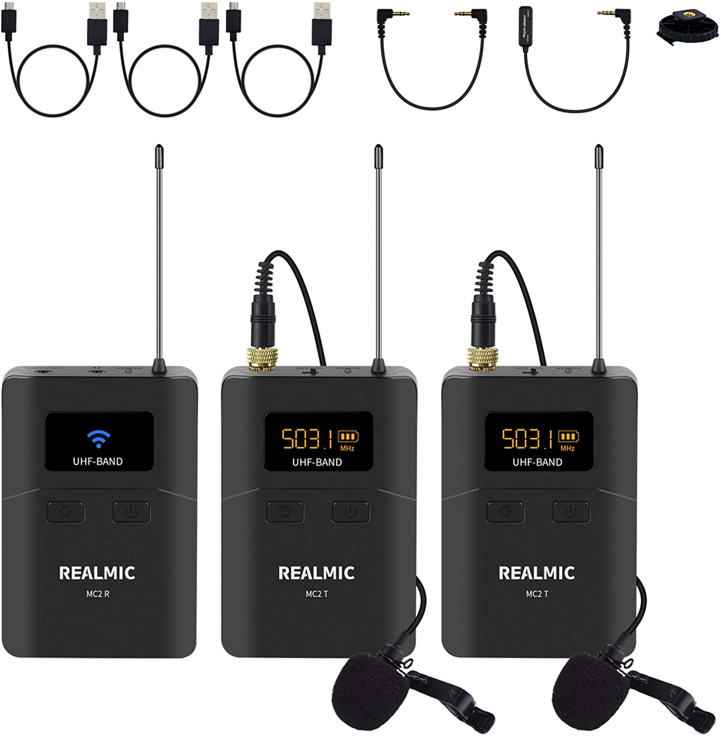 Wireless Lavalier Microphone System with Receiver,Transmitters and Lapel Microphones Compatible with DSLR Cameras (MC2S)