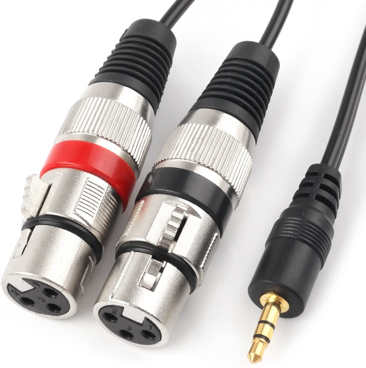 TISINO Dual XLR Female to 3.5mm Stereo Microphone Cable, Unbalanced Double XLR to 1/8 Inch Aux Mini Jack Y-Splitter Breakout Lead Mic Cord - 5 FT