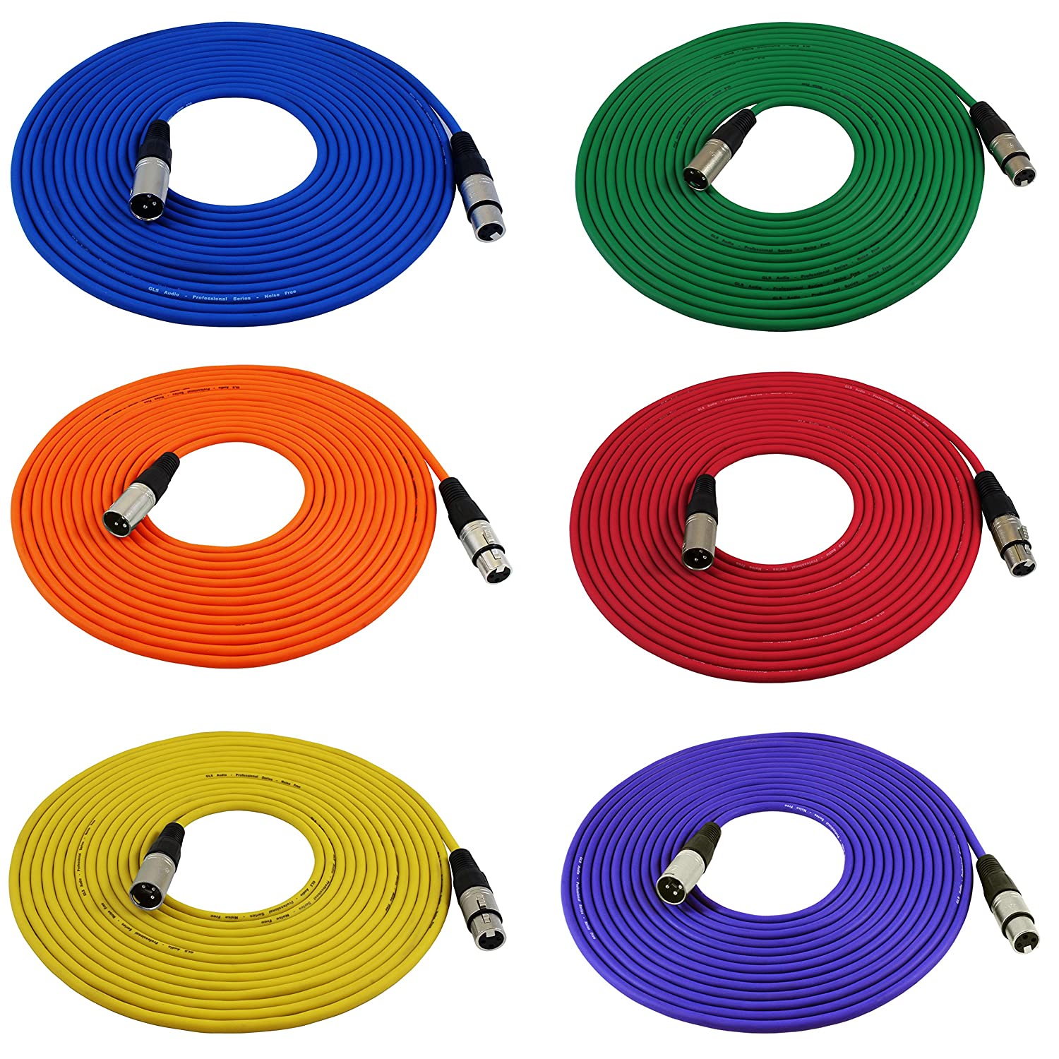 GLS Audio 25ft Mic Cable Cords - XLR Male to XLR Female Colored Cables - 25' Balanced Mike Cord - 6 Pack
