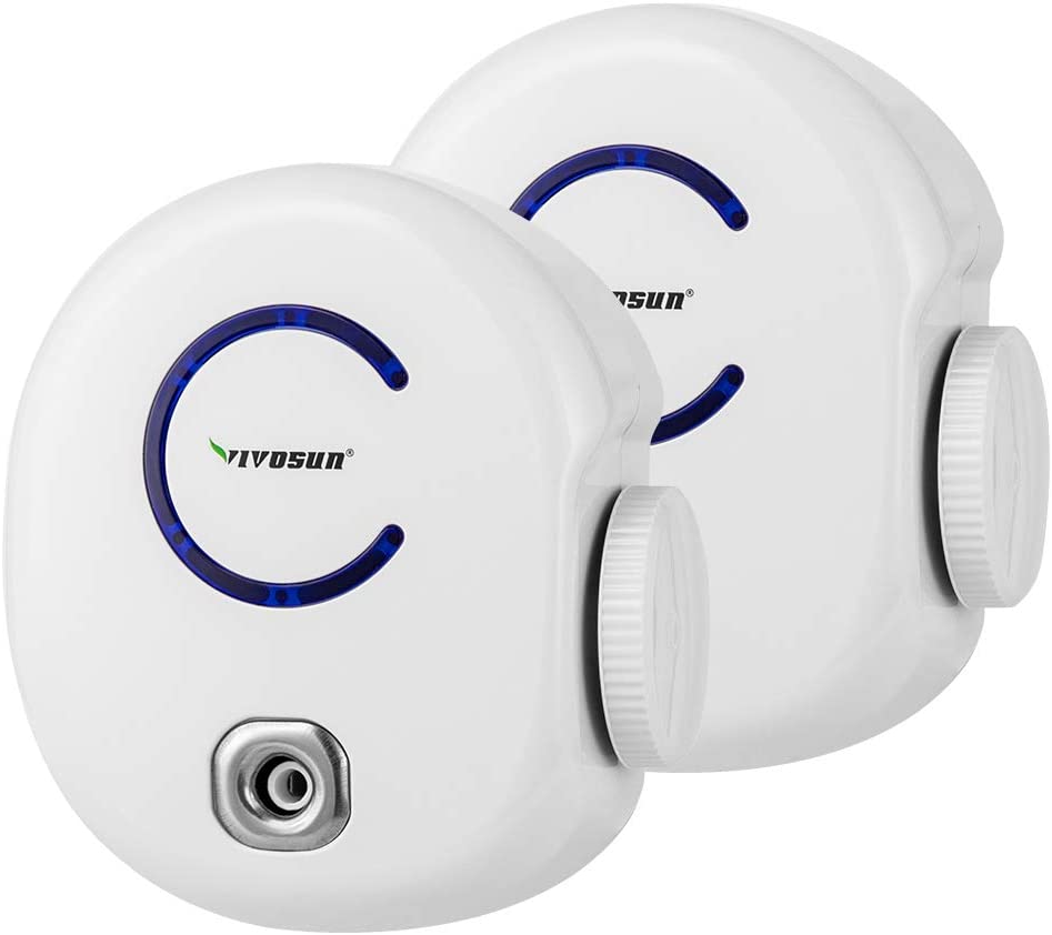 VIVOSUN 2-Pack Plug-in Mini Ionic Air Purifier Ozone Generator - Portable Odor Eliminator, Adjustable Efficiency 10-50mg/h