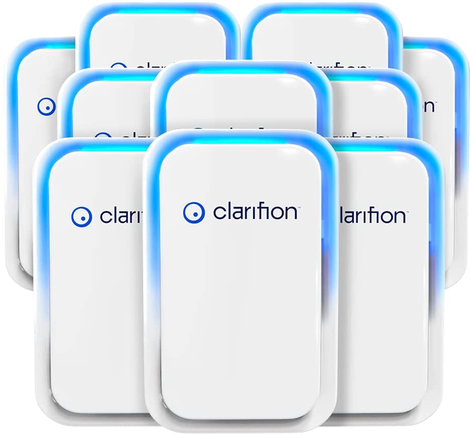 Clarifion - Negative Ion Generator with Highest Output (10 Pack) Filterless Mobile Ionizer & Travel Air Purifier, Plug in, Eliminates: Pollutants, Allergens, Germs, Smoke, Bacteria, Pet Dander & More