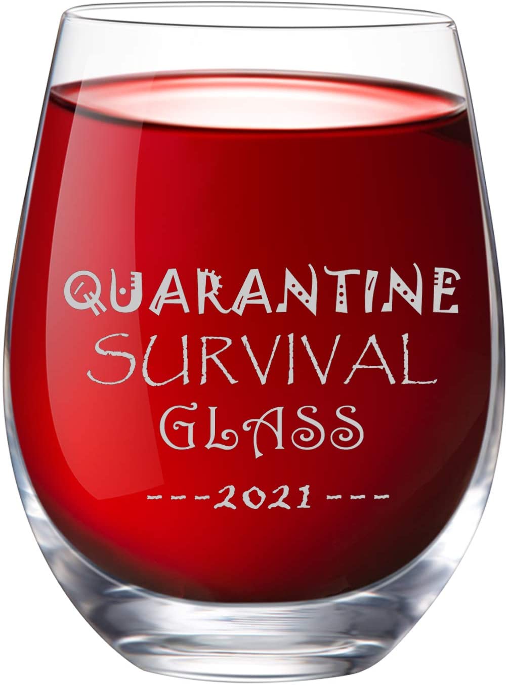 Quarantine Survival 2021 Stemless Wine Glass 15 oz Novelty Crystal Cup with Sayings Funny Gifts Party Accessories for Women Man Friend