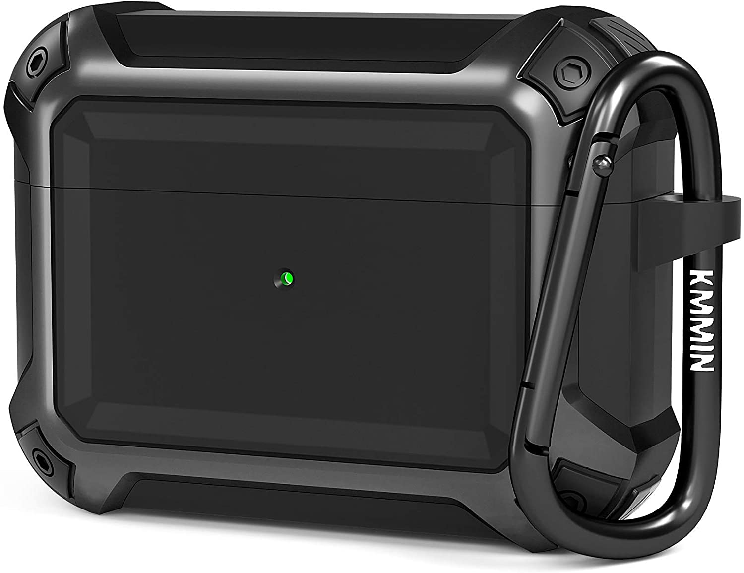 Rugged Case for AirPods Pro, KMMIN AirPods Pro Case Cover Military Hard Shell Full-body Protective Cover Skin Shockproof AirPods Pro Accessories with Keychain, Front LED Visible