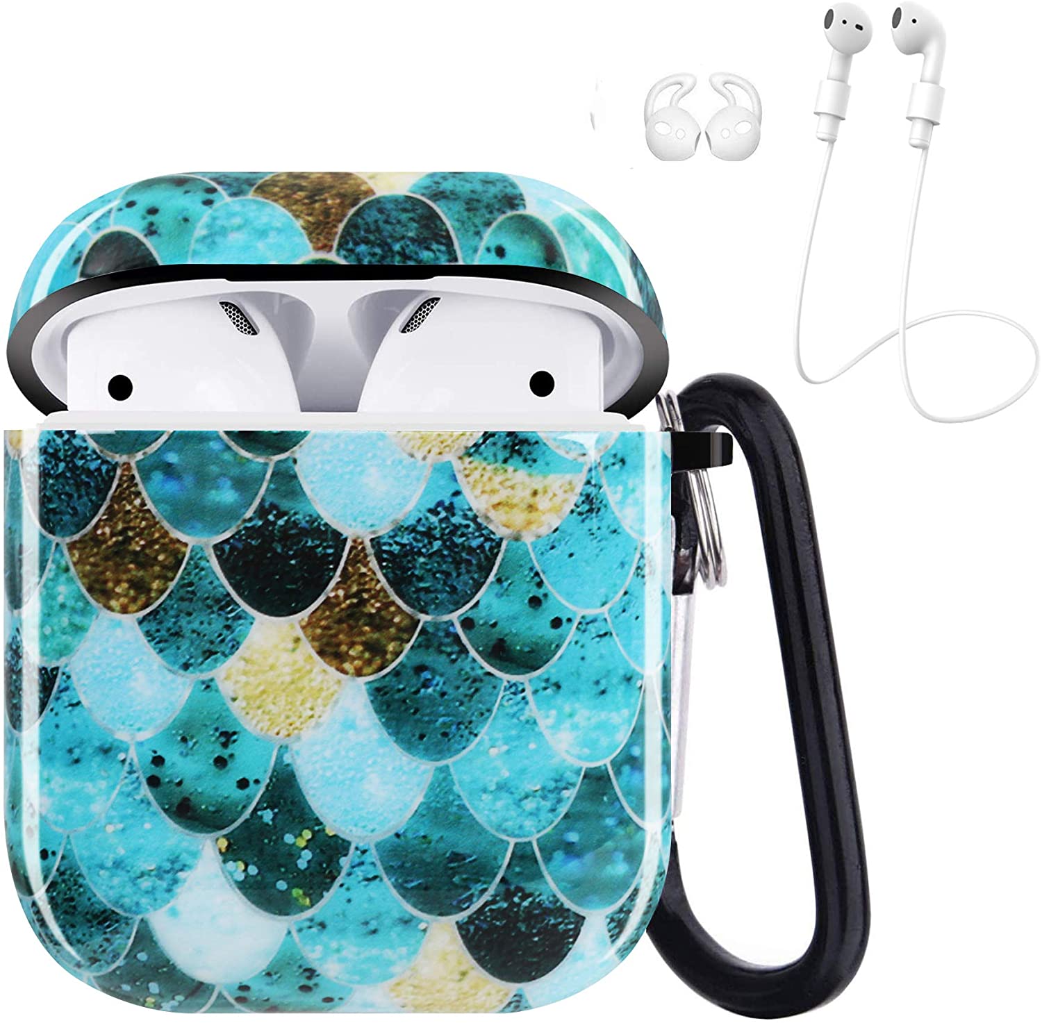iCasso Airpods Case, Shockproof Protective Soft Case Cover with Keychain Compatible with AirPods 2/1, Full Protective TPU Case for Airpods Charging Case Airpods Accesssories - Sequined Mermaid