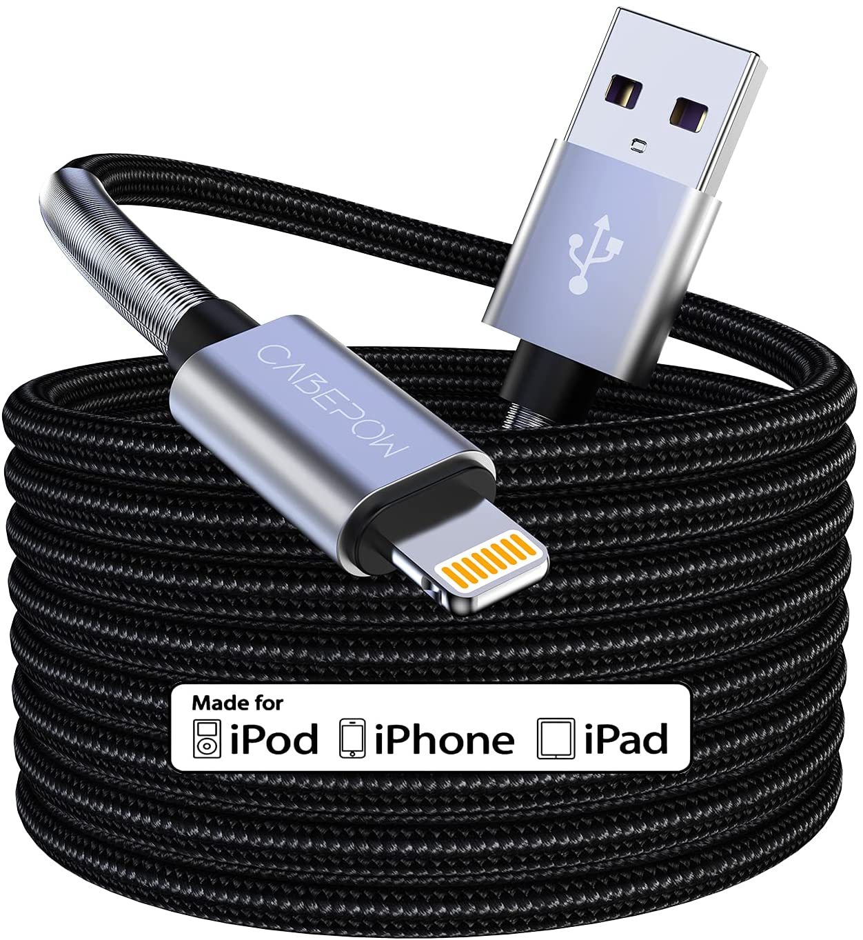 15 Ft Extra Long iPhone Charger Cord,[Apple MFi Certified] Cabepow iPhone Charging Cable, Nylon Braided Lightning Cables 2.4A for iPhone 12/11 Pro /11 Pro Max/XS/XS Max/XR/X/8/8 Plus/7/7 Plus/6