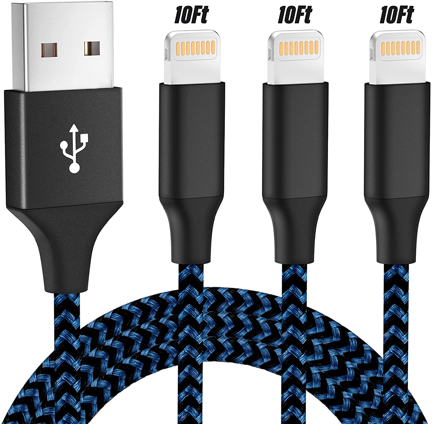 iPhone Charger Mfi Certified Lightning Cable 3Pack 10FT Nylon Braided iPhone Charger Cable Fast Charging Syncing Long Cord Compatible iPhone 12/Max/11Pro/11/XS/Max/XR/X/8/8P/7 - BlackBlue