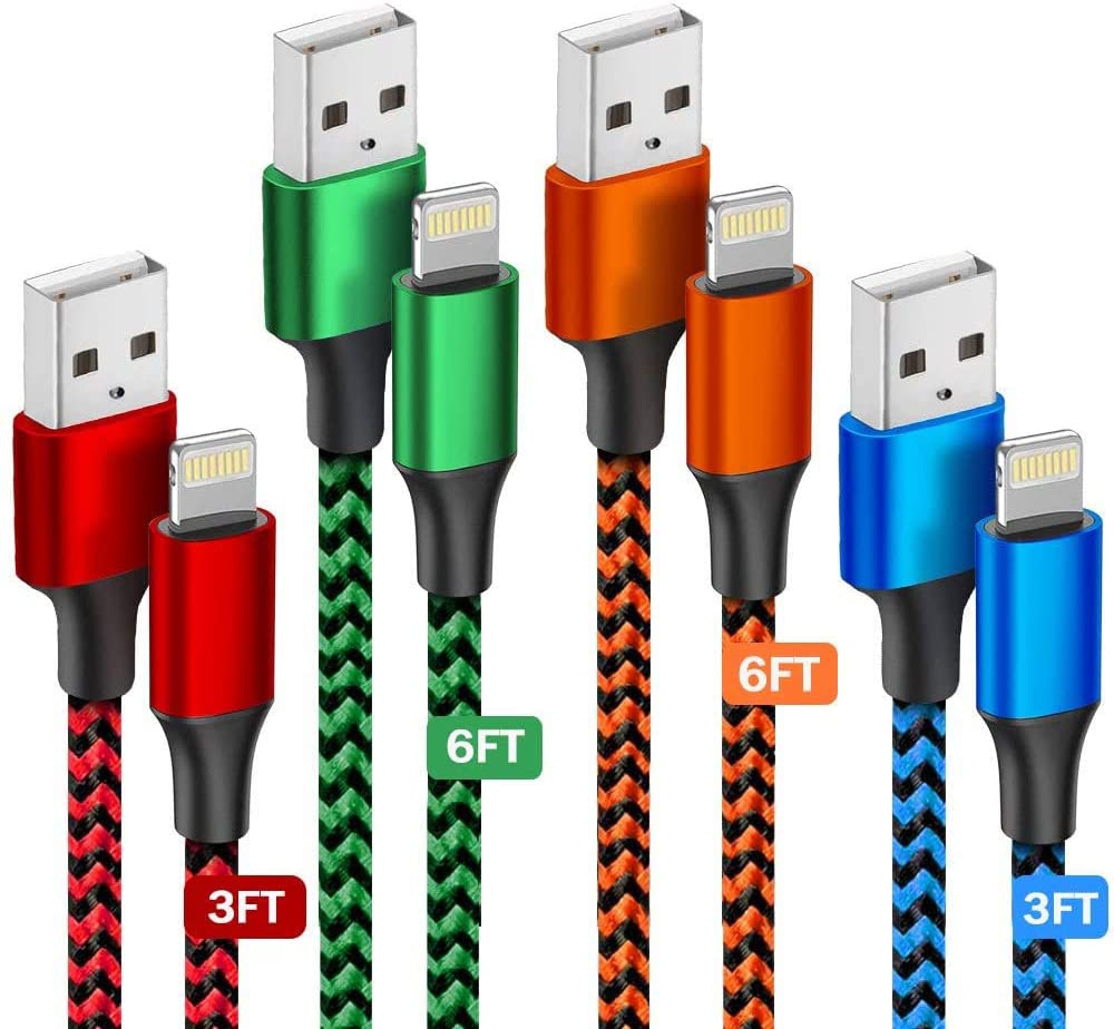 4 Pack 6ft iPhone Charger Cable, [Apple MFi Certified] Long USB A to Lightning Cable 6 Feet, 6 Foot Nylon Fast Apple Charging Cable Cord for Apple iPhone 12/11 Pro/11/XS MAX/XR/8/7/6s/6/5S/SE iPad