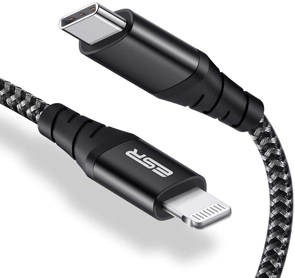 ESR USB-C to Lightning Cable, 7.8 in (20 cm), MFi-Certified Braided Nylon PD Fast Charging Cable for iPhone 12/12 mini/12 Pro/12 Pro Max/11/XR/XS Max/XS/X/8, for Use with Type-C Chargers, Black