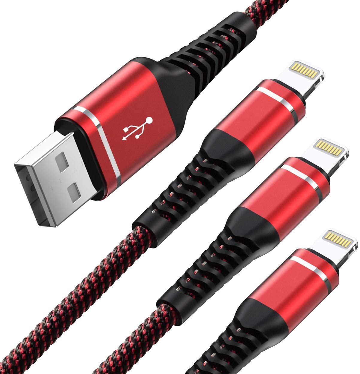 Heavy Duty Charger Cable, 3Pack 6ft USB Charging Cable, Braided Nylon Long Charger Cord Compatible with iPhone 11/11 Pro/X/Xs Max/XR / 8/8 Plus / 7/7 Plus/6/6S/6plus /iPad Mini-Red