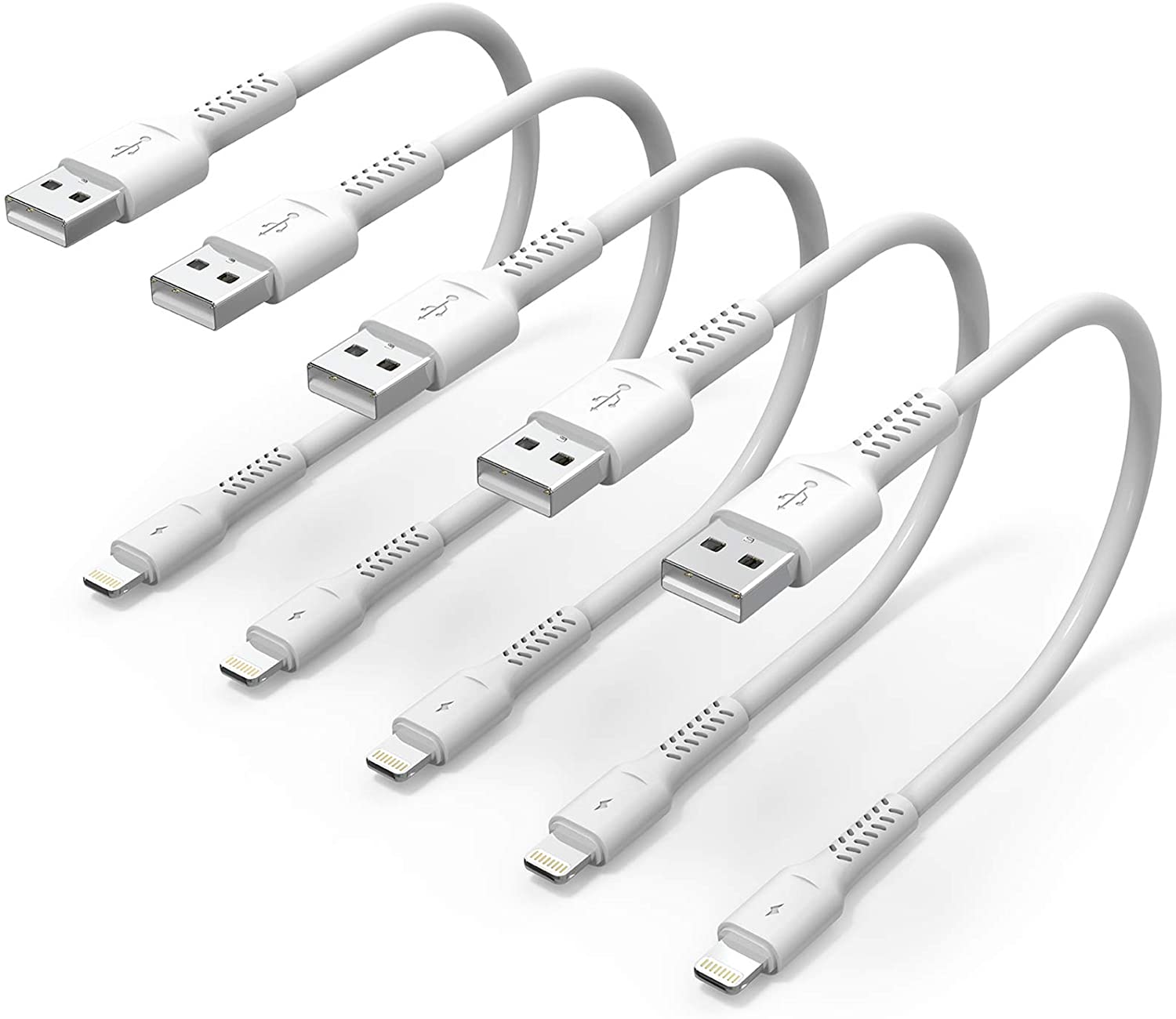 6 inch iPhone Charge Cable Short, 0.5ft 5Pack USB to Lightning Cord for Fast Charging Stations Compatible with Apple iPhone 12 11 Pro Max Xs 8 7 6 5 Plus, iPad Air/Mini
