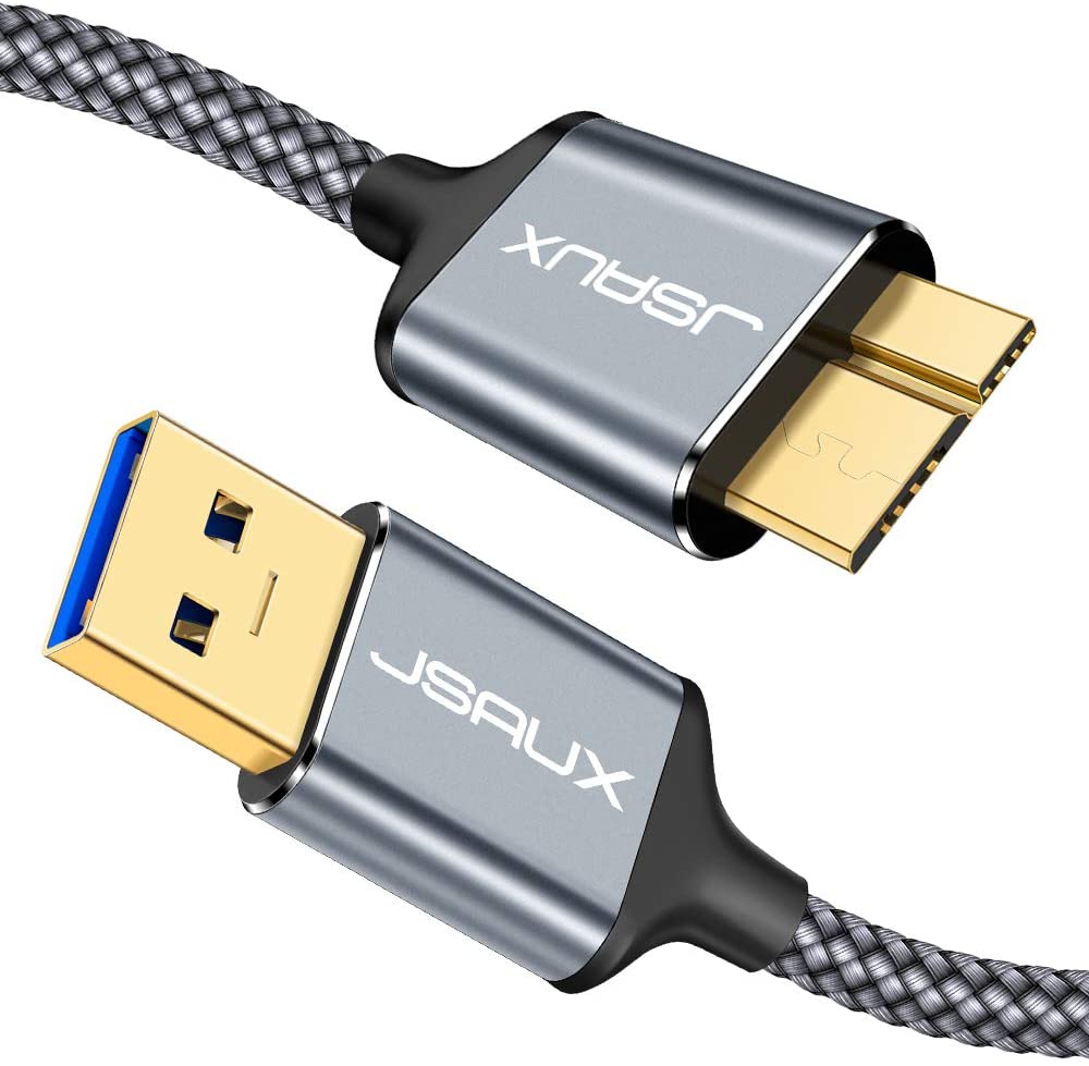 Micro USB 3.0 Cable, JSAUX USB A Male to Micro B Cable 2 Pack [3.3FT+6.6FT] External Hard Drive Cable Galaxy S5 Nylon Braided Cord for Samsung Galaxy S5, Note 3, Seagate Hard Drive, WD Hard Drive-Grey