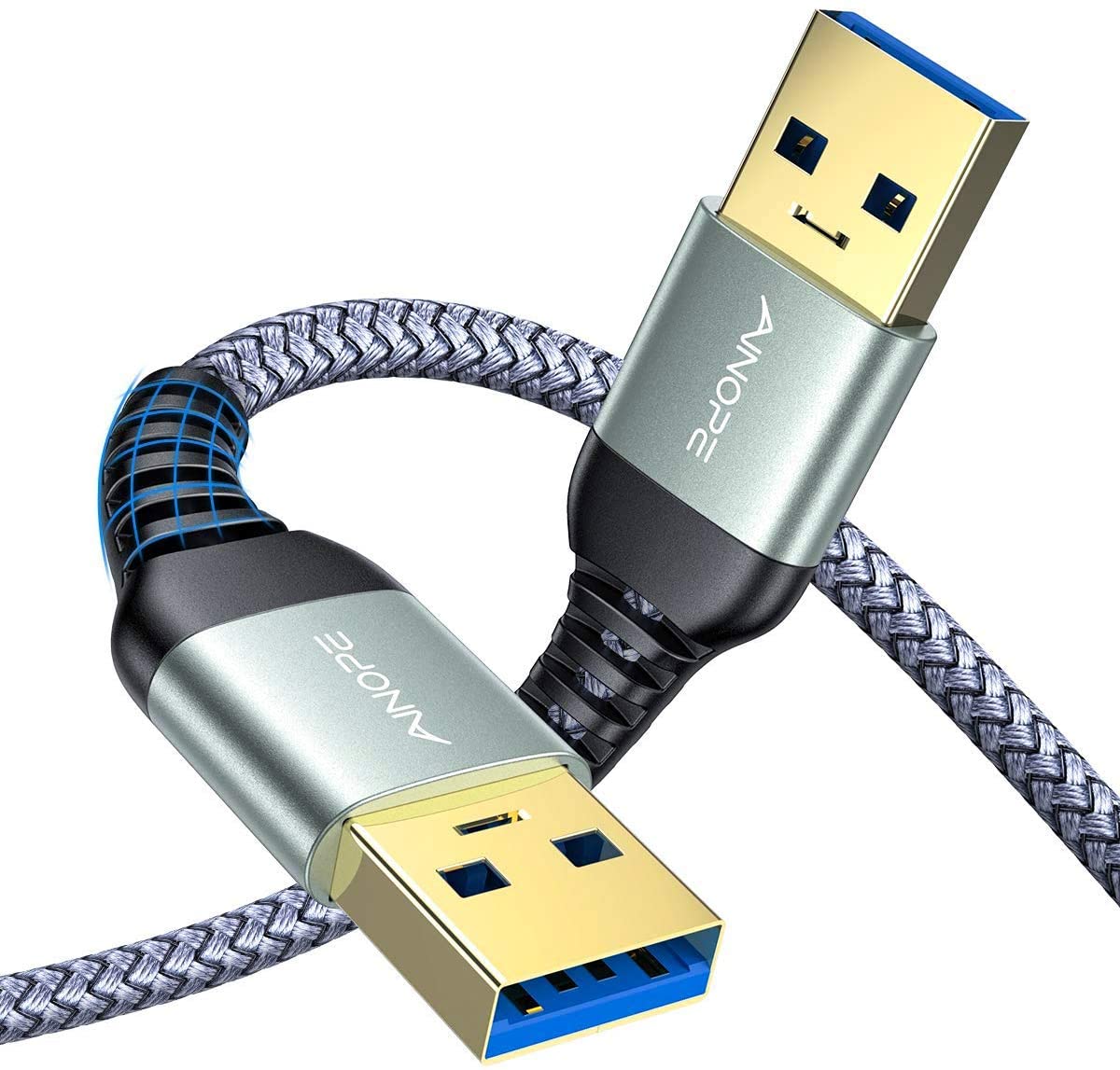 2 Pack AINOPE USB 3.0 A to A Male Cable 6.6FT+6.6FT,USB 3.0 to USB 3.0 Cable [Never Rupture] USB Male to Male Cable Double End USB Cord Compatible with Hard Drive Enclosures, DVD Player, Laptop Cool
