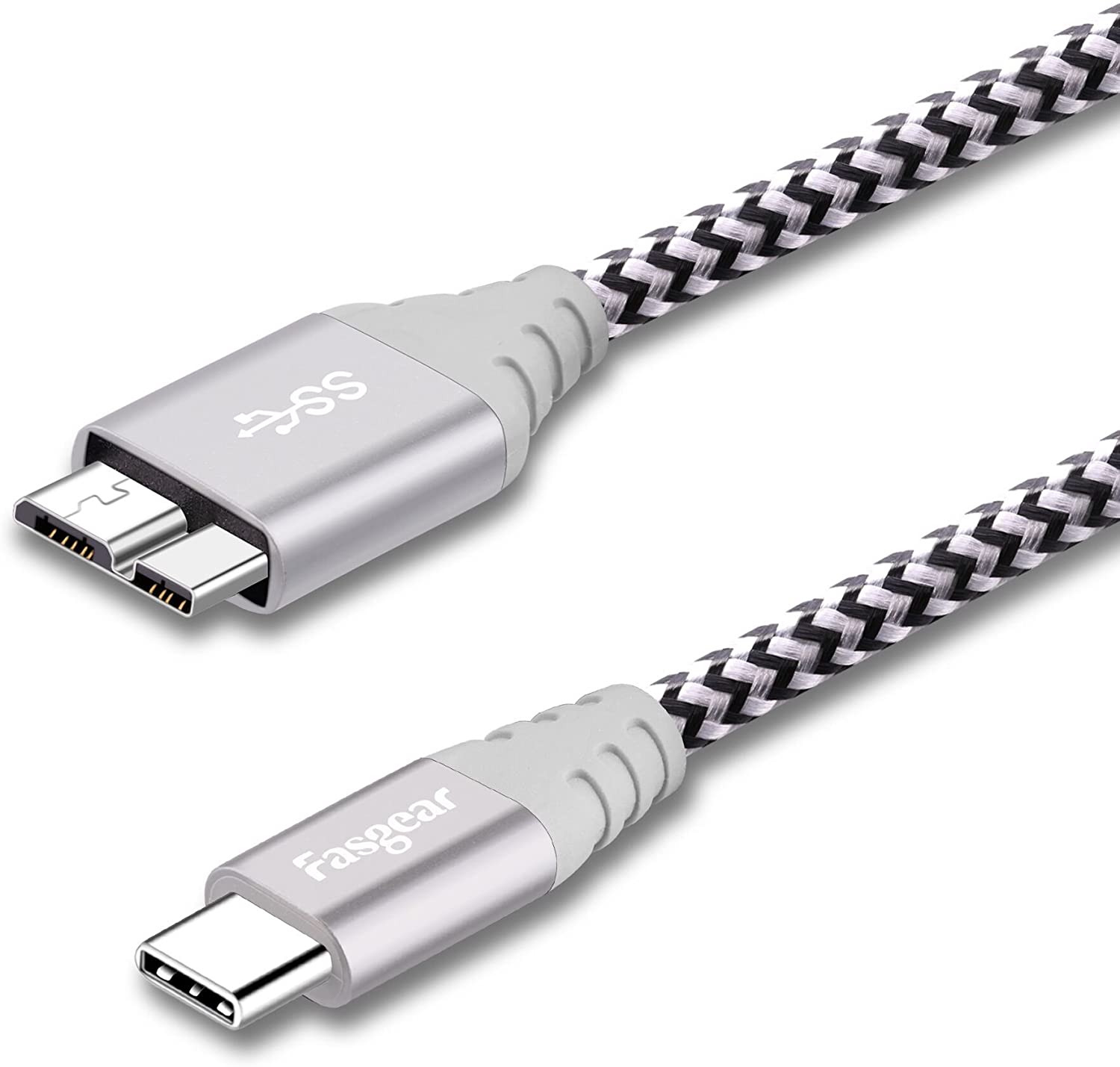 USB C to Micro B Cord, 1 Pack Fasgear Nylon Braided Metal Connector Type C 3.0 to Micro B Cable 1ft, Fast Charge Sync Compatible with Toshiba Canvio, Westgate, Seagate, Galaxy S5 Note 3 (Gray)