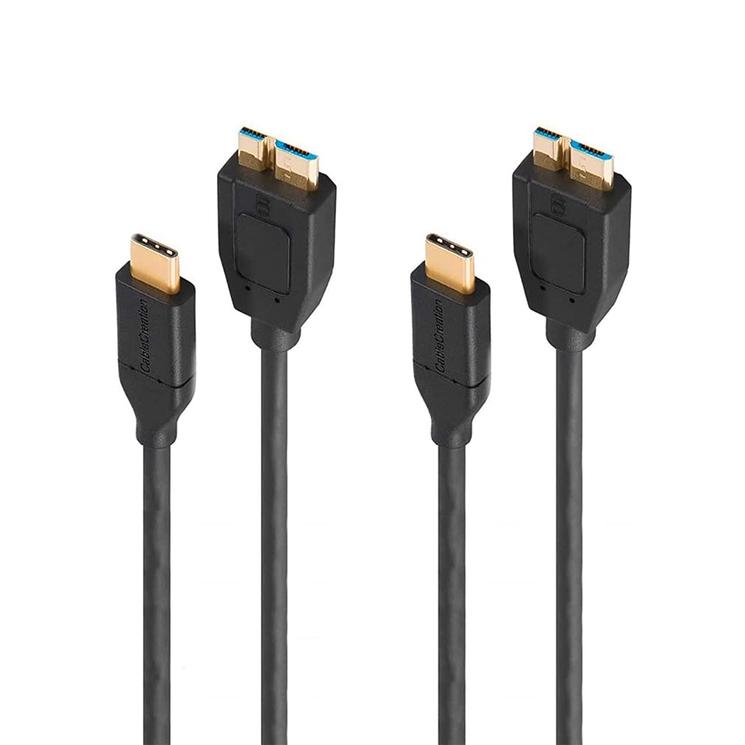 CableCreation USB C to Micro B 3.0 Cable [2-Pack], Gen2 10Gbps Fast Charging & Syncing Cord Compatible with MacBook Pro, Galaxy S20, Toshiba Canvio, External Hard Drive, 0.3M/ Black