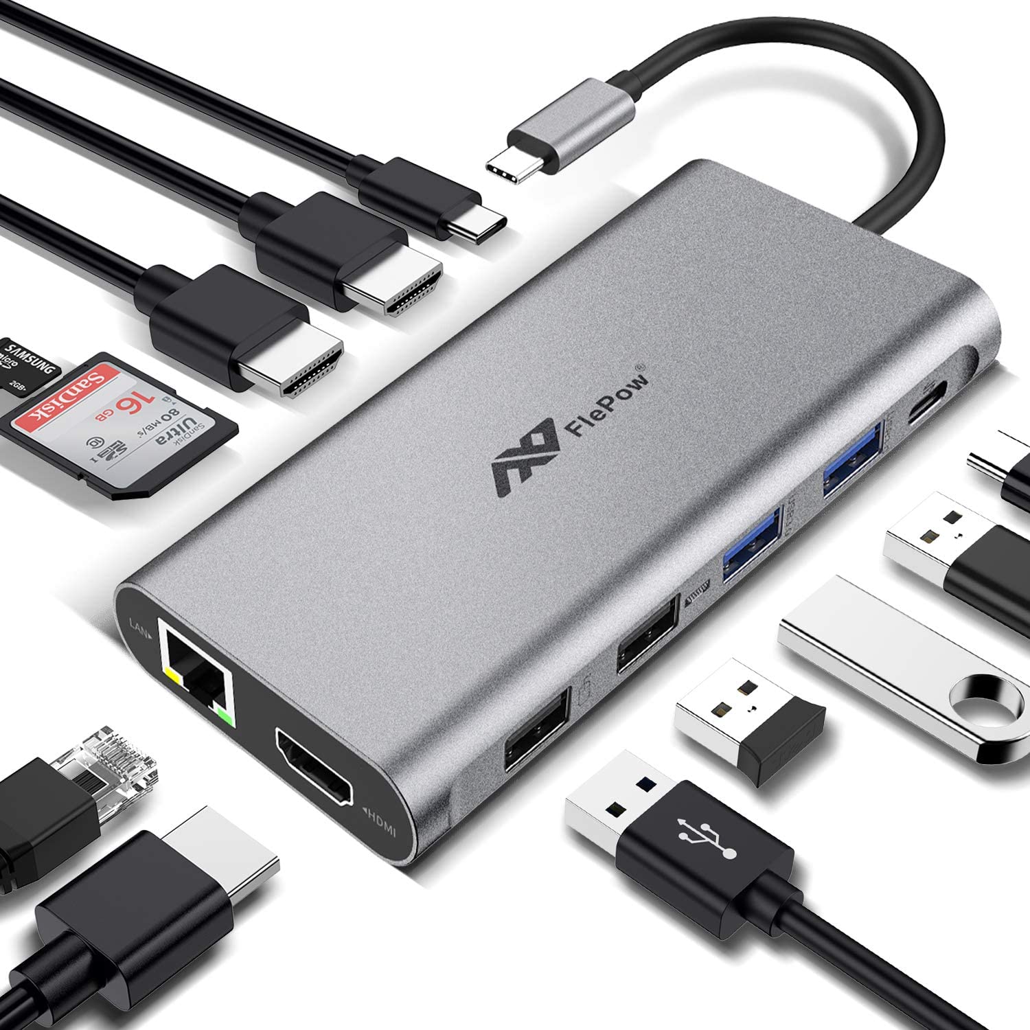 USB C Hub Laptop Docking Station - 12 in 1 Dongle with Triple 4K HDMI, PD Charging, Gigabit Ethernet, USB 3.0 Type C Port, 4USB Ports, SD/TF Card Reader Compatible for Macbook Pro More USB-C devices