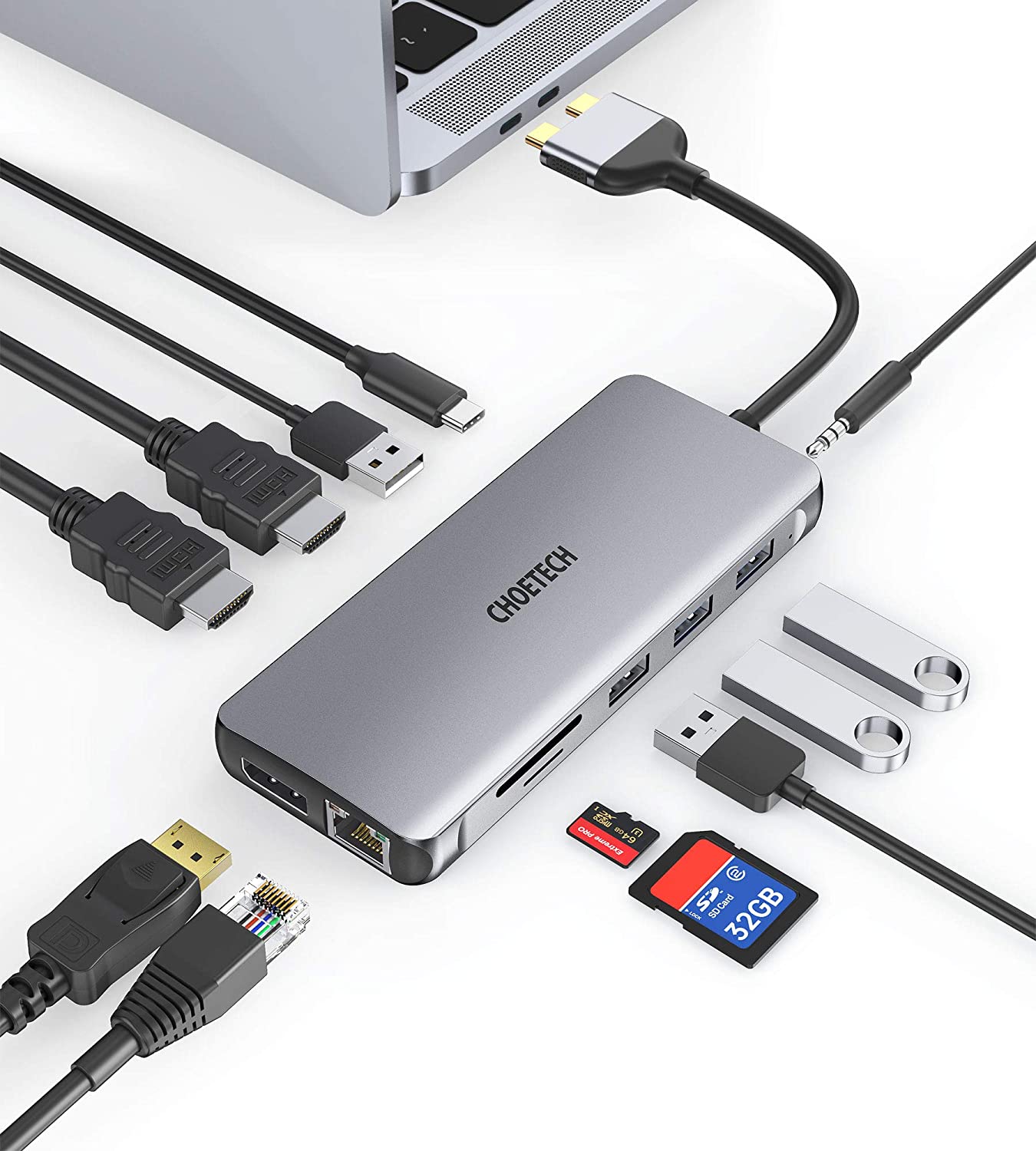 MacBook Pro Docking Station, CHOETECH 12 in 2 Docking Station Dual Monitor 4K@60Hz Triple Display Compatible for MacBook Pro/Air, Dual HDMI, DisplayPort, USB C 3.0/2.0, PD 3.0, SD Slot, RJ45