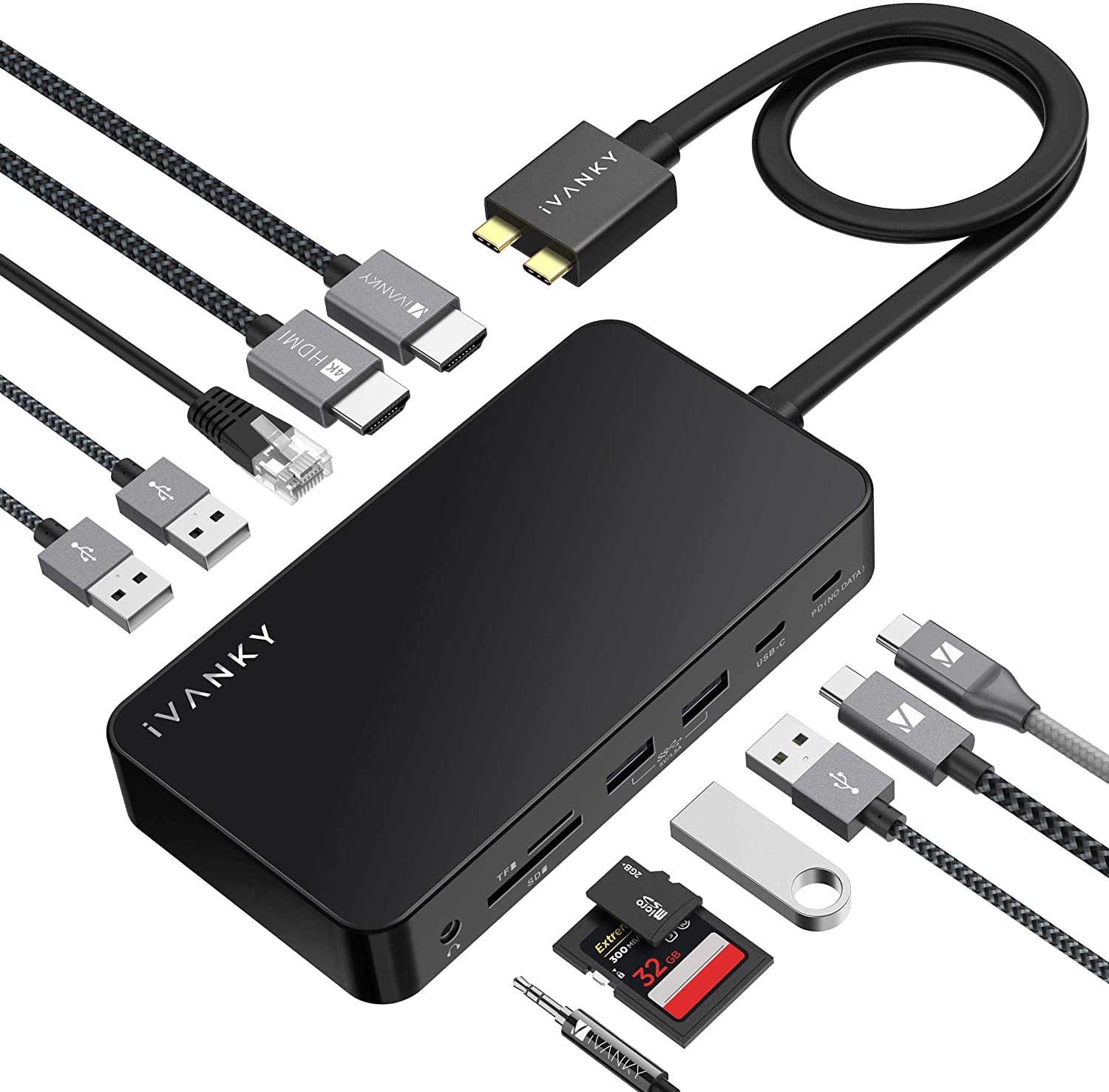 iVANKY Docking Station Classic, 12-IN-2 MacBook Pro Docking Station with 100W Power Adapter, 4K Powered Dock with 18W PD and USB-A Ports (2 HDMI, RJ45, SD/TF, 6 USB Ports, 3.5mm Audio)