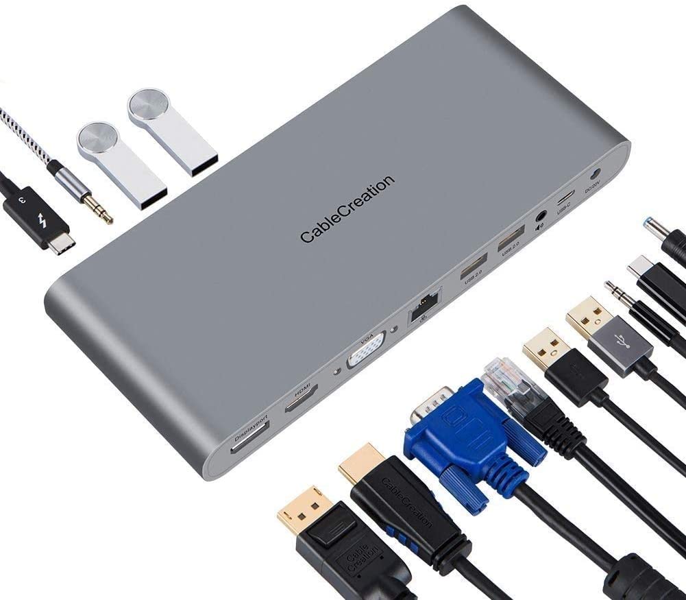 Thunderbolt 3 Dock w/1.6ft Cable, CableCreation 13-in-1 USB C Hub with DisplayPort, VGA, HDMI, Ethernet, 2 Audio, 4 USB A, USB C PD Compatible for Macbook Pro/Air2019 2018, MacOS Windows USB-C Laptops