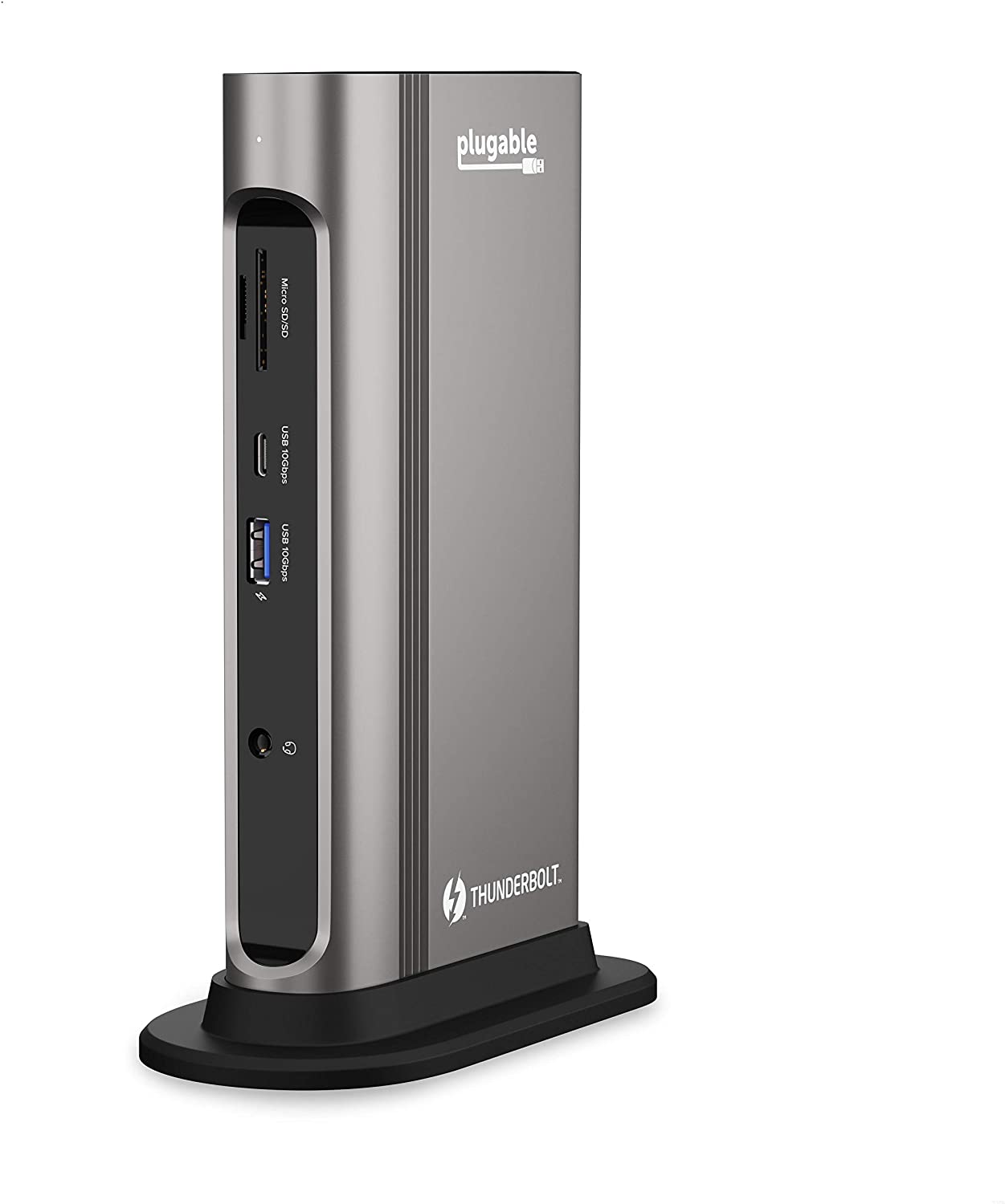 Plugable Thunderbolt 3 and USB C Dock with 60W Charging, Compatible with MacBook/MacBook Pro and Windows Laptops, Dual DisplayPort, 2X USB-C, 3X USB 3.0, Gigabit Ethernet, Audio Jack - Horizontal